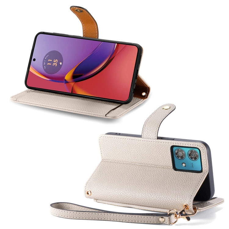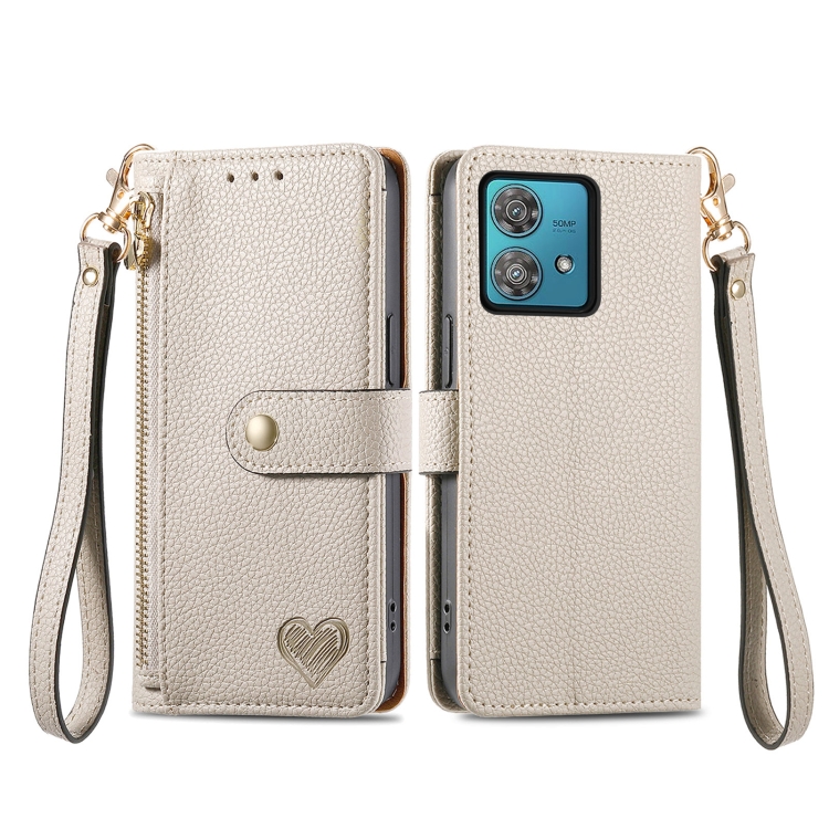 Funda de Cuero para Motorola Moto G84 Love con Zipper y Lanyard (Blanco)