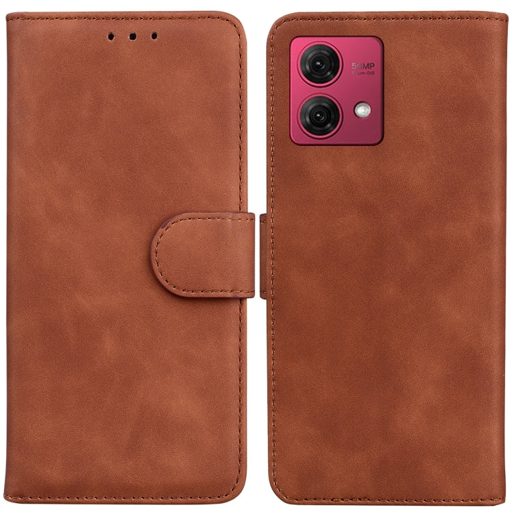 Funda de Cuero con Tapa para Motorola Moto G84 Skin Feel Pure Color (Marrón)