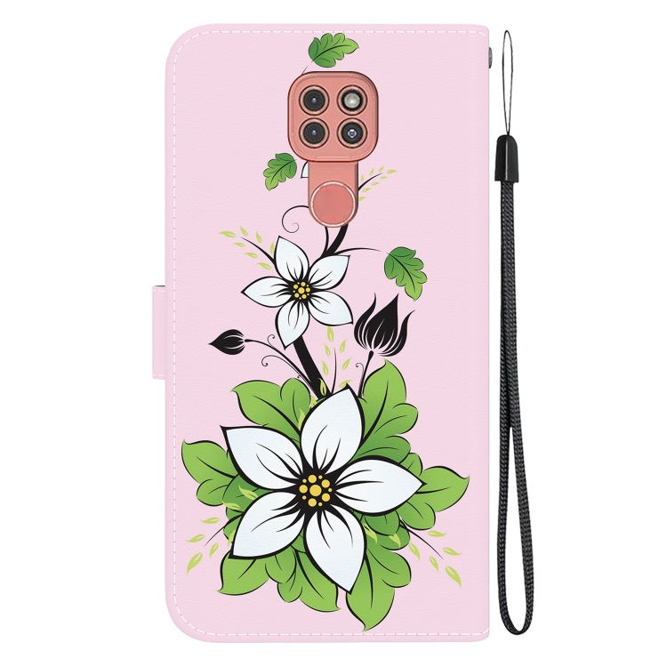 Funda para Motorola Moto G9 Play y E7 Plus de Cuero con Dibujo Coloreado y Textura de Cristal (Lirio)