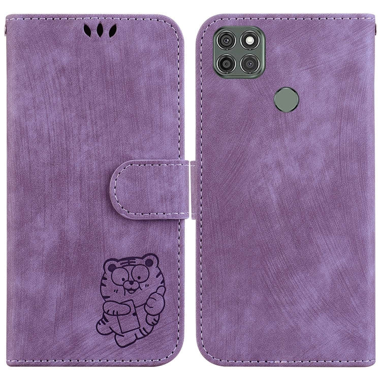 Funda de Cuero en Relieve Little Tiger para Motorola Moto G9 Power (Púrpura)
