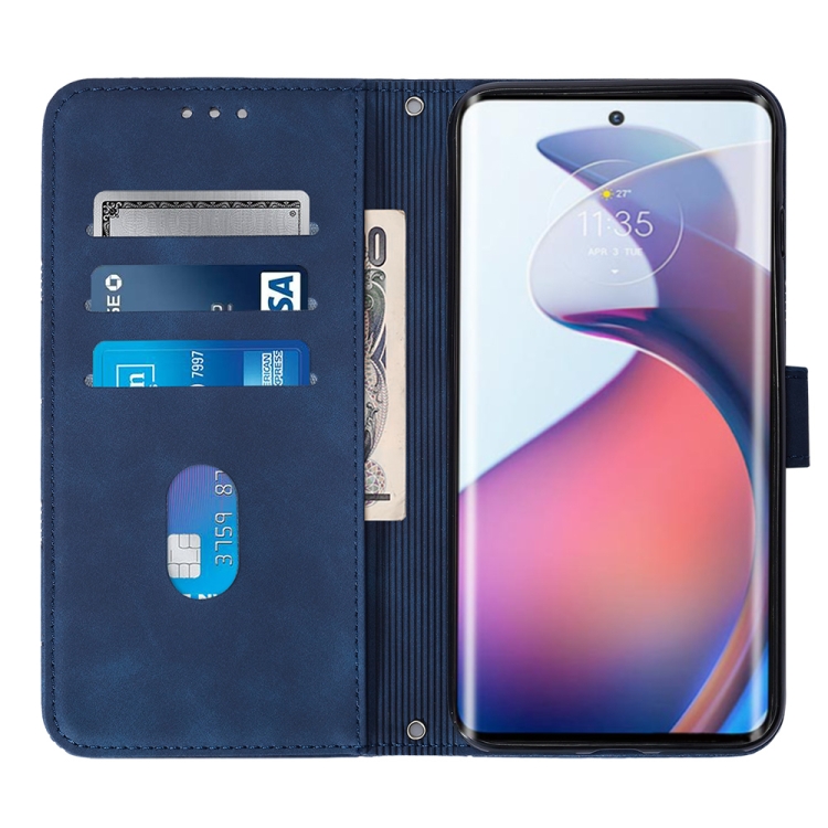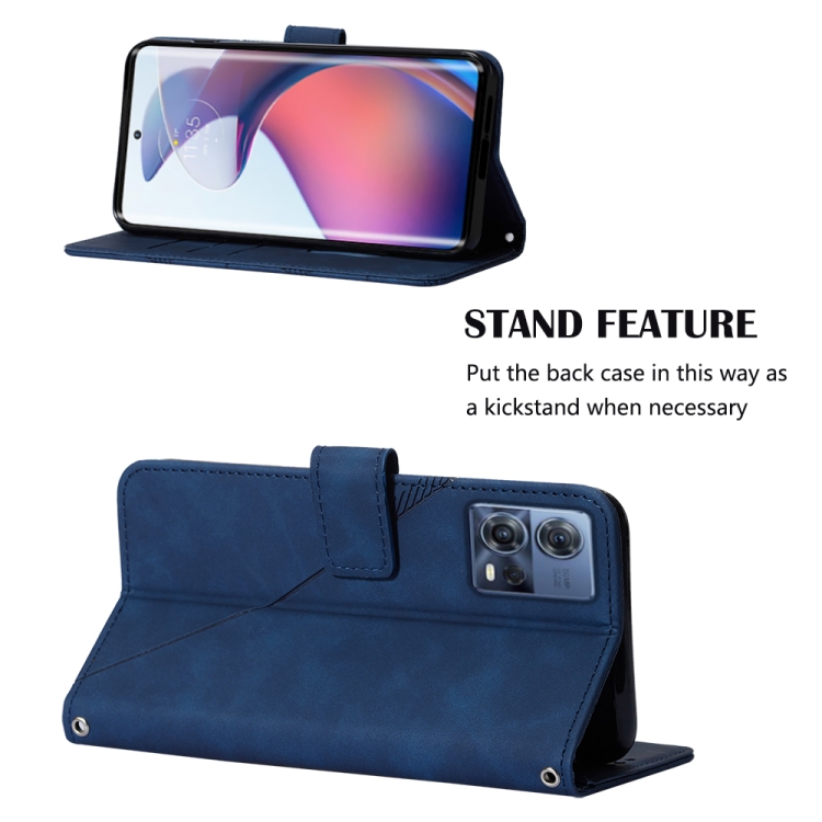 Funda de Cuero Crossbody 3D para Motorola Moto S30 Pro 5G con Tapa En Relieve (Azul)