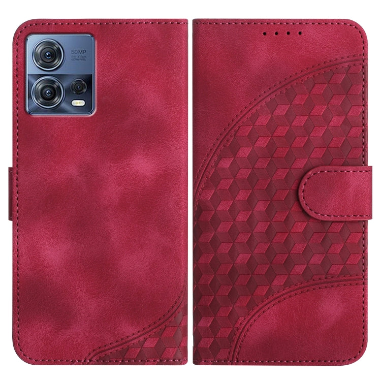 Funda de Cuero Motorola Moto S30 Pro 5G Edge 30 Fusion 5G Yx0060 con Relieve y Cabeza de Elefante con Cordón (Rojo Rosa)