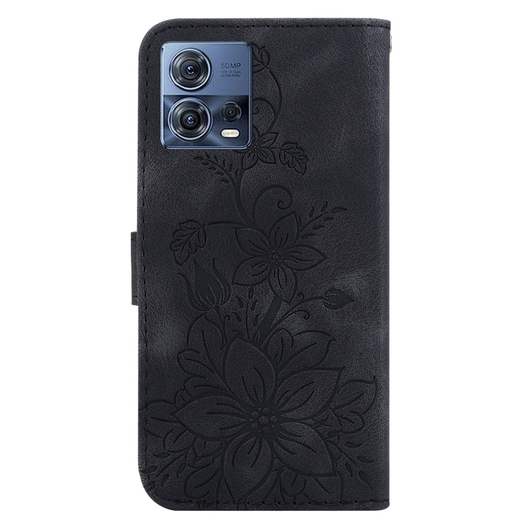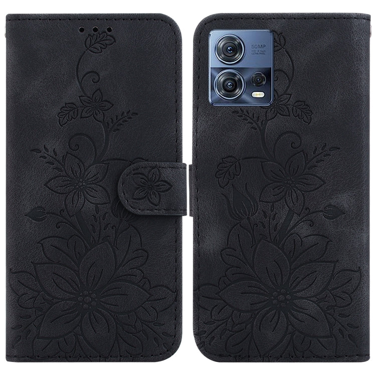 Funda de Cuero con Relieve Lily para Motorola Moto S30 Pro Edge 30 Fusion 5G (Negro)