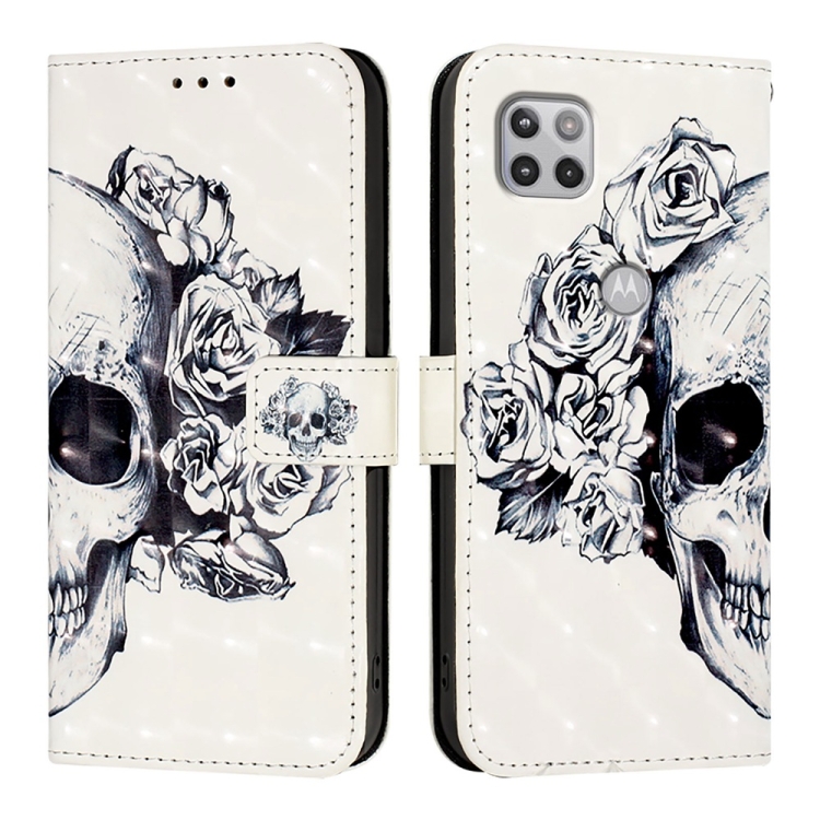 Funda de Cuero para Motorola One 5G Ace y Moto G 5G 2020 con Tapa Horizontal y Pintura 3D (Calavera)