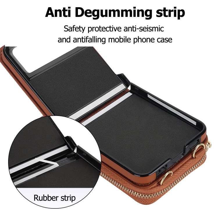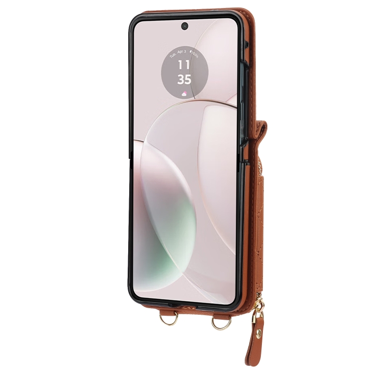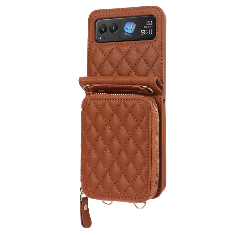 Estuche para Motorola Razr 40 con Bolsa para Tarjetas Textura Rómbica y Cordón Doble (Marrón)