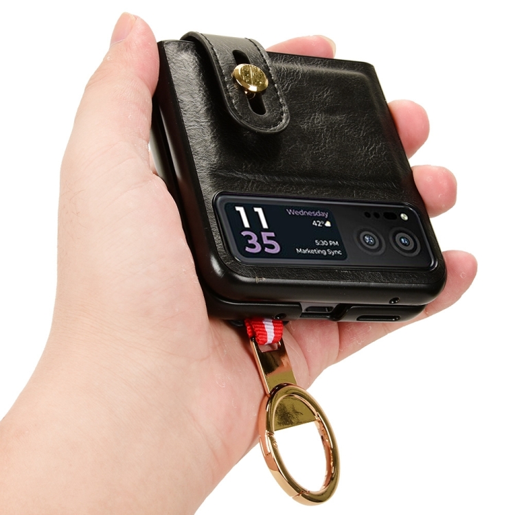 Funda Trasera de Cuero para Motorola Razr 40 con Pulsera (Negro)