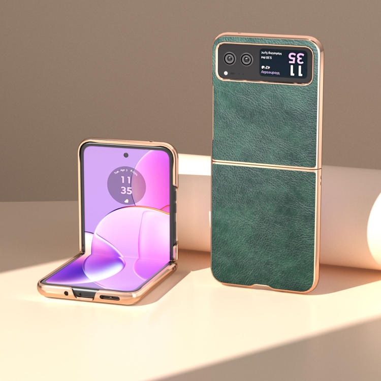 Funda para Motorola Razr 40 Nano Galvanoplastia PU Textura Lichi Doble Color (Verde)