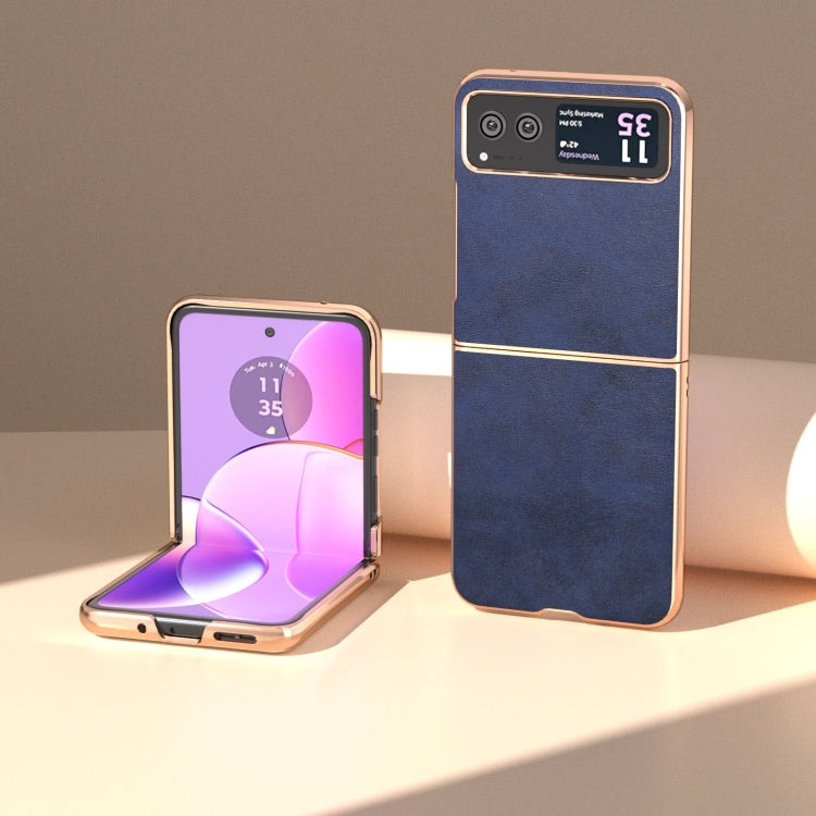 Funda Protectora Motorola Razr 40 Nano Galvanoplastia Textura Piel de Vaca Doble Color (Azul)