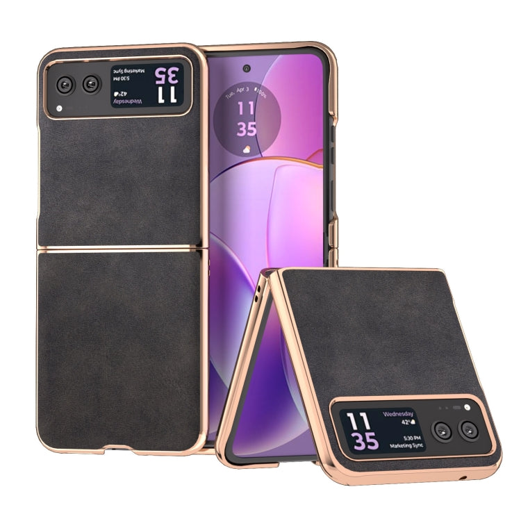 Funda Protectora Motorola Razr 40 Nano Galvanoplastia Textura Piel de Vaca Doble Color (Negro)