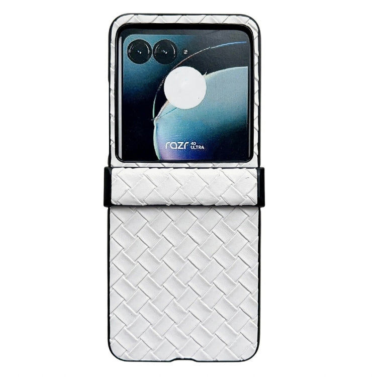 Funda para Motorola Razr 40 Ultra Juego de Tres Piezas PU Plegable con Textura Tejida (Blanco)
