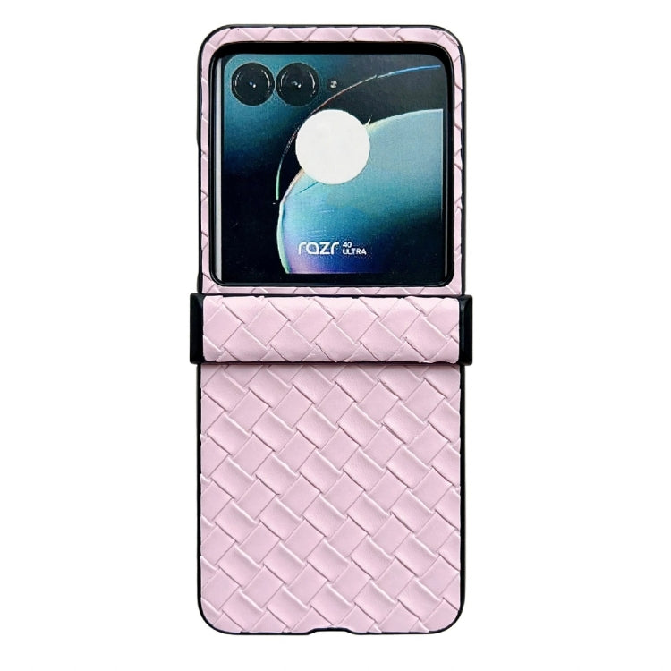 Funda para Motorola Razr 40 Ultra Juego de Tres Piezas PU Plegable con Textura Tejida (Rosa)