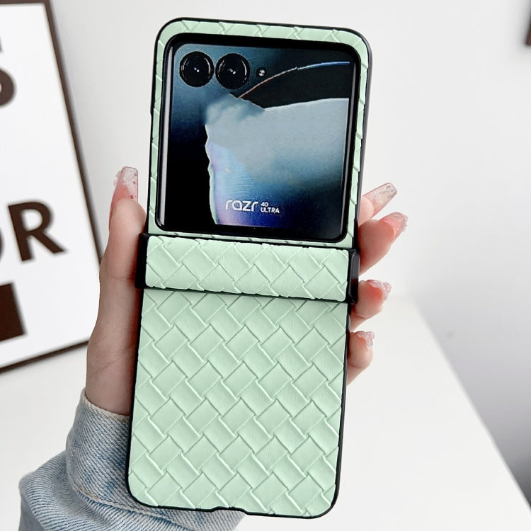 Funda para Motorola Razr 40 Ultra Juego de Tres Piezas PU Plegable con Textura Tejida (Verde)