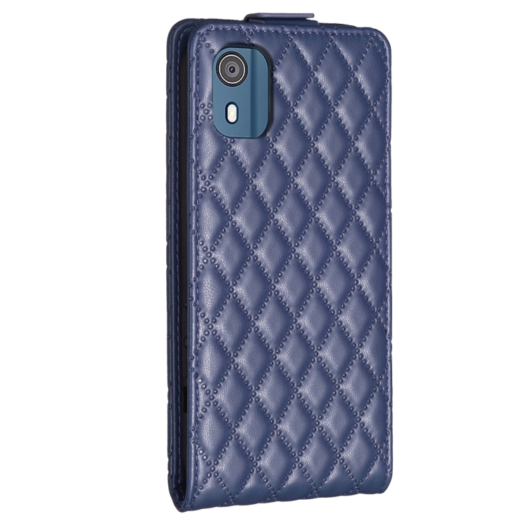 Funda de Cuero para Nokia C02 con Tapa Vertical y Diseño Diamond Lattice (Azul)