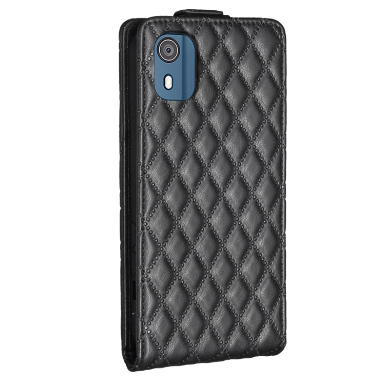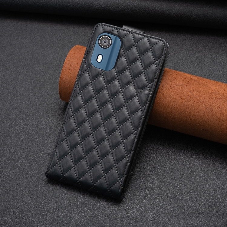 Funda de Cuero para Nokia C02 con Tapa Vertical y Diseño Diamond Lattice (Negro)