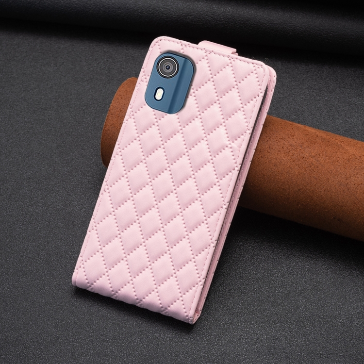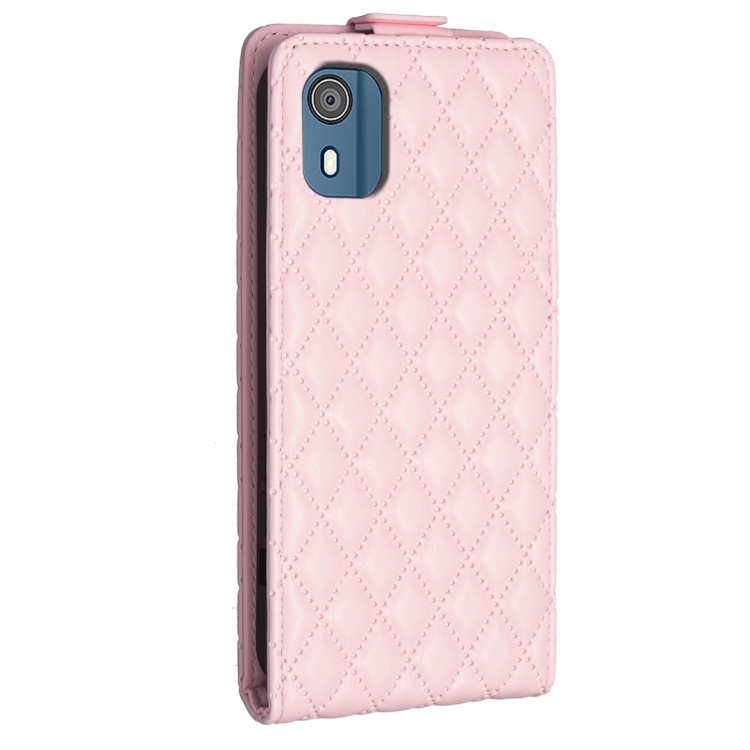 Funda de Cuero para Nokia C02 con Tapa Vertical y Diseño Diamond Lattice (Rosa)