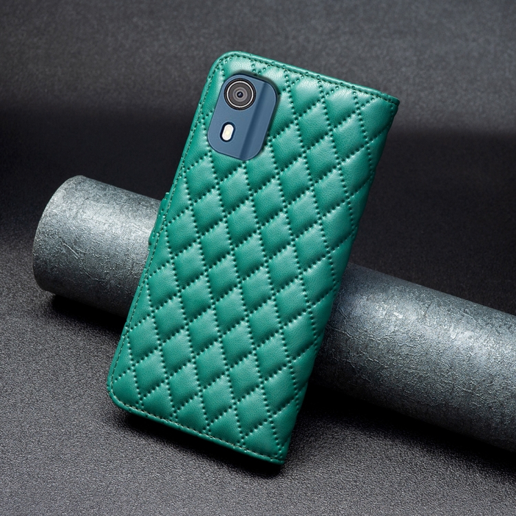 Funda de Cuero Wallet Flip para Nokia C02 Diamond Lattice (Verde)