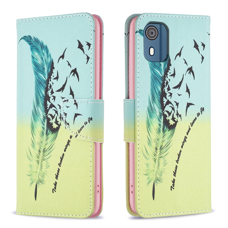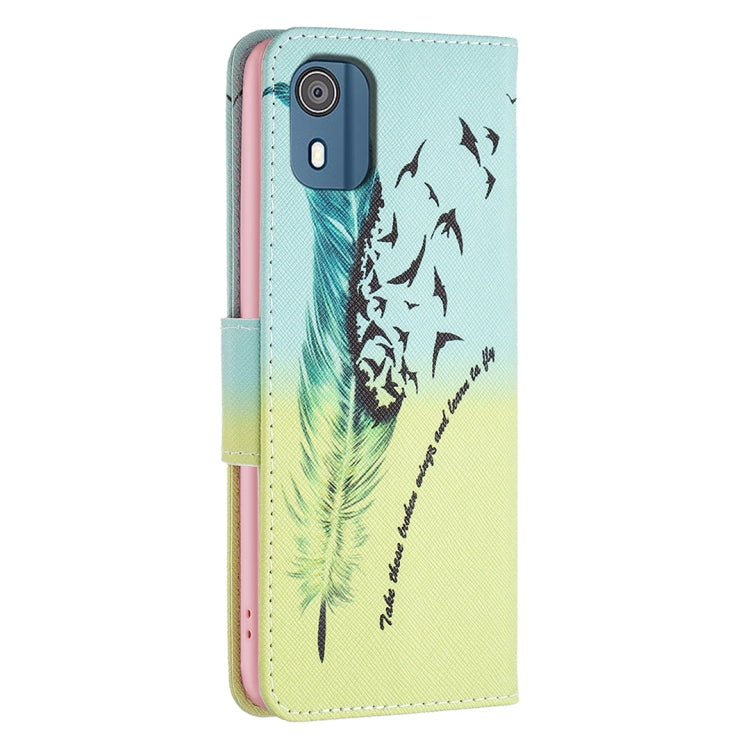 Estuche de Cuero para Nokia C02 con Patrón de Dibujo Coloreado y Pluma