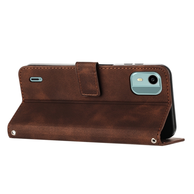 Funda de Cuero para Nokia C12 Dream Triangle con Cordón (Marrón)