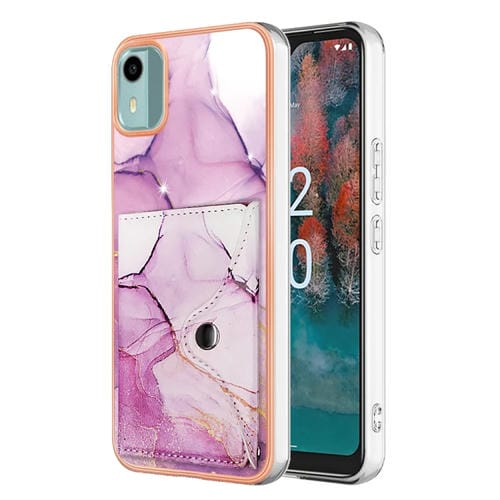 Estuche para Nokia C12 con Ranura para Tarjeta y Patrón Mármol (Oro Rosa Púrpura)
