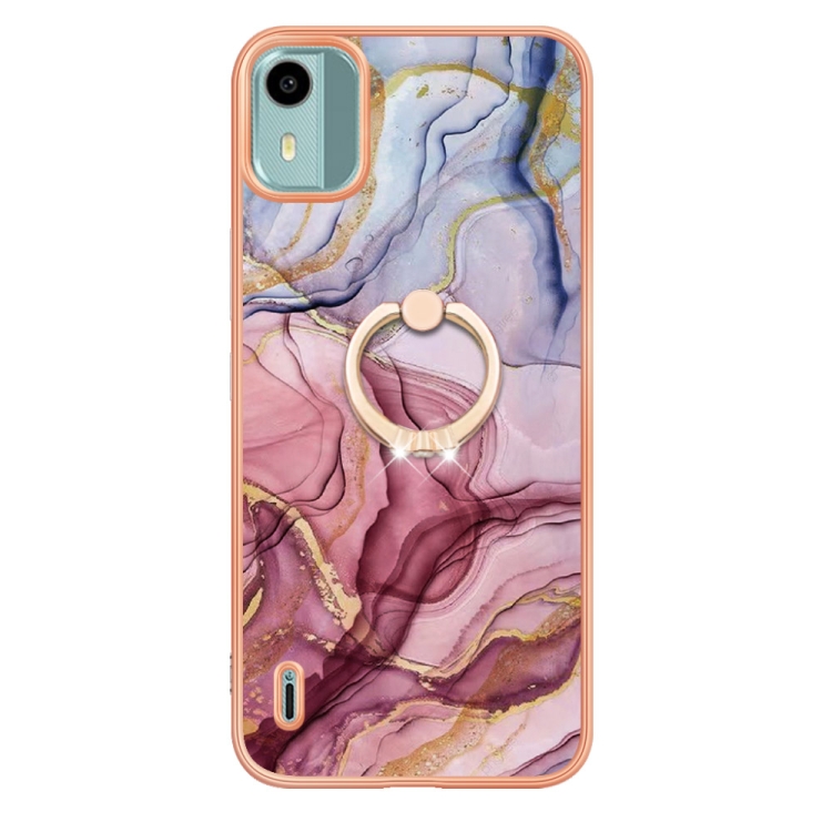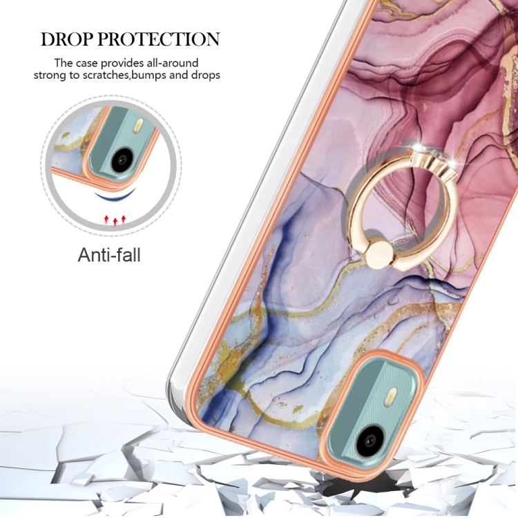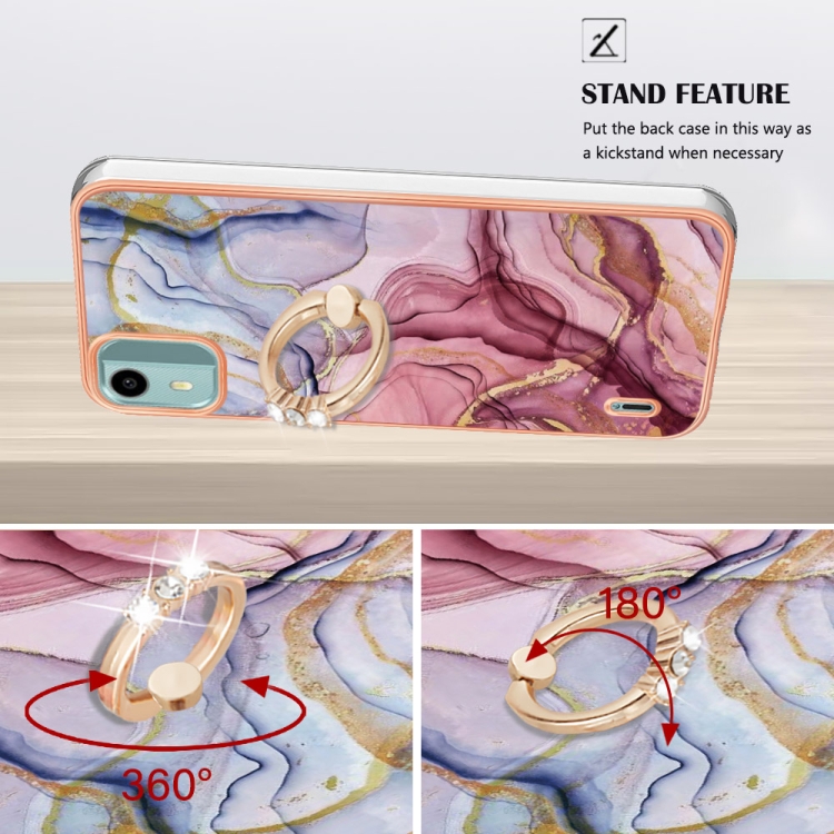 Estuche para Nokia C12 IMD Doble Cara Mármol Galvanizado con Anillo (Rosa Roja)