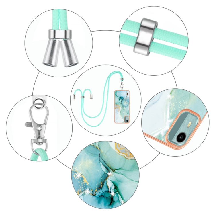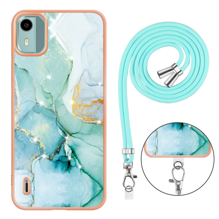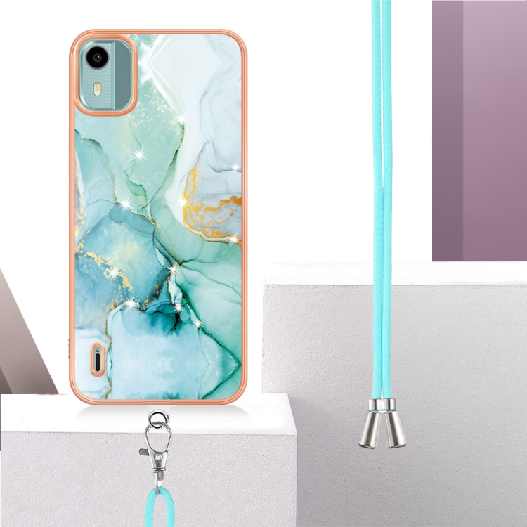 Estuche para Teléfono Nokia C12 IMD Doble Cara Mármol Galvanizado con Cordón (Verde)