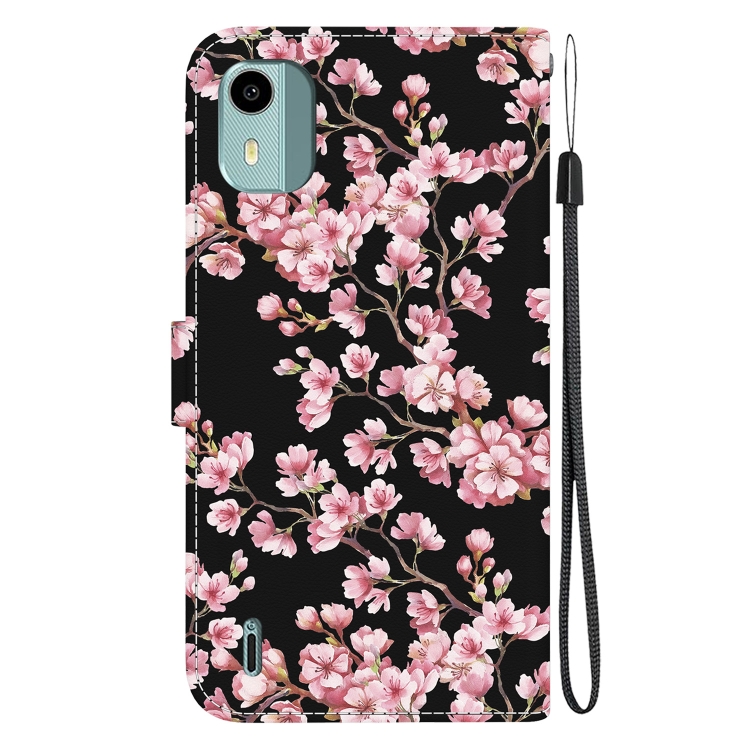 Funda de Cuero para Nokia C12 con Dibujo Coloreado y Textura de Cristal (Flor de Ciruelo)
