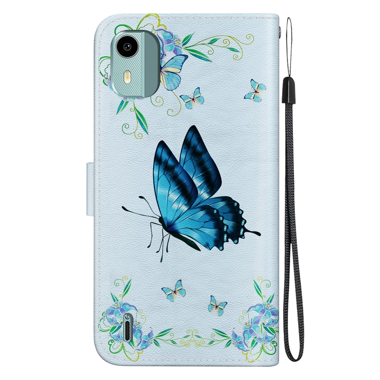 Funda para Teléfono Nokia C12 de Cuero con Dibujo Coloreado y Textura de Cristal (Pensamientos Azules)