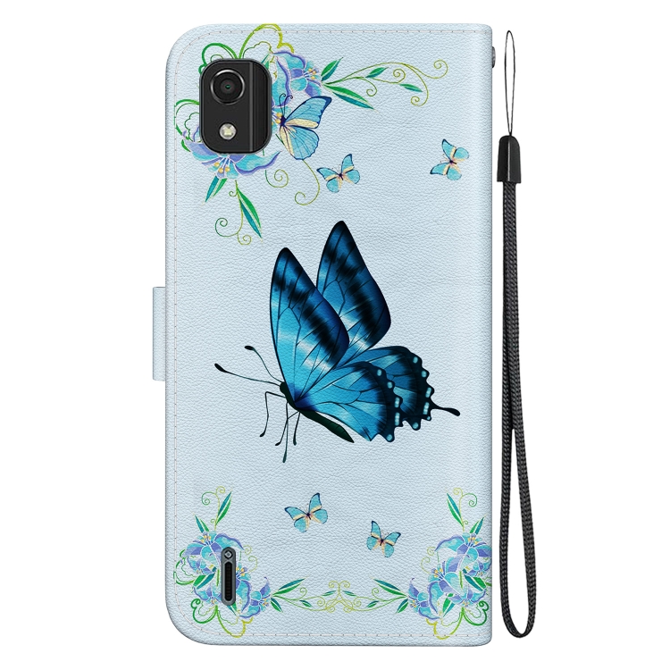 Funda para Nokia C2 2.A Edición de Cuero con Dibujo Coloreado y Textura de Cristal (Pensamientos Azules)