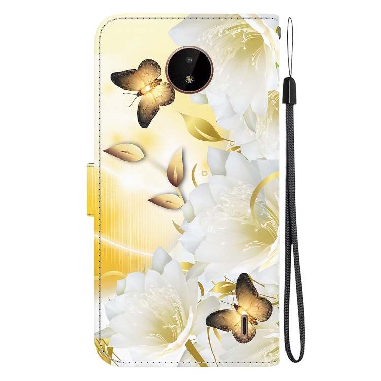 Funda de Cuero para Nokia C20 / C10 con Dibujo Epiphyllum y Mariposa Dorada, Textura Cristal