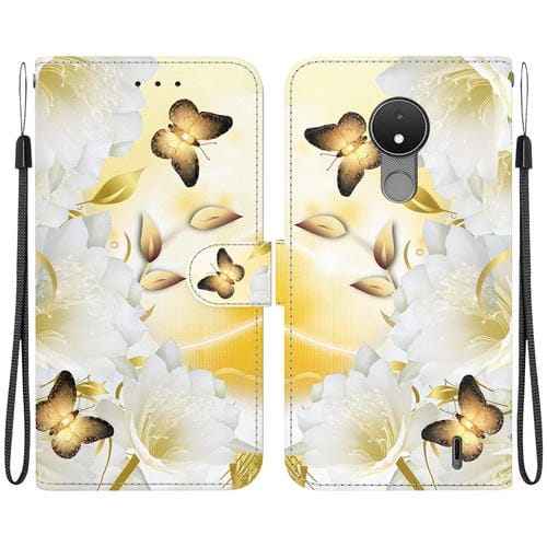 Funda de Cuero para Nokia C21 con Dibujo Coloreado y Textura de Cristal (Epiphyllum Mariposa Dorada)