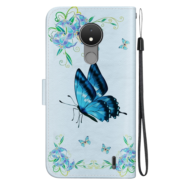 Funda de Cuero para Nokia C21 con Dibujo Coloreado y Textura de Cristal (Pensamientos Azules)