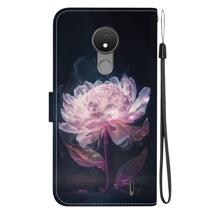Funda de Cuero para Nokia C21 con Dibujo Coloreado y Textura de Cristal (Peonía Púrpura)