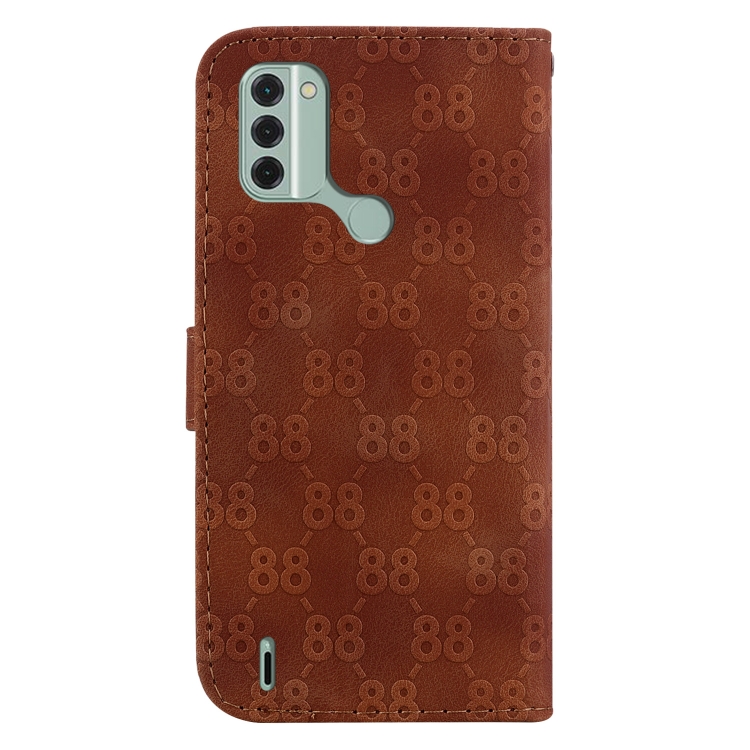 Estuche para Teléfono Nokia C21 Plus de Cuero en Relieve con Doble Forma de 8 (Marrón)