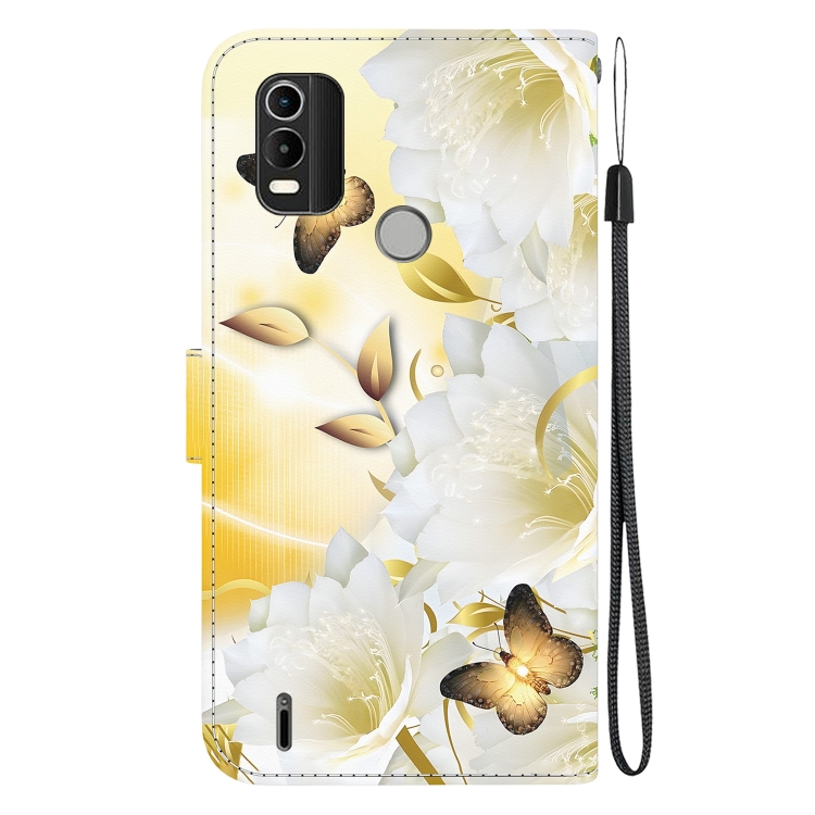 Funda para Nokia C21 Plus de Cuero con Dibujo Coloreado y Textura de Cristal (Epiphyllum Mariposa Dorada)