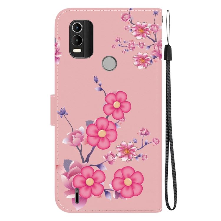 Funda para Nokia C21 Plus de Cuero con Dibujo Coloreado y Textura de Cristal (Flores de Cerezo)