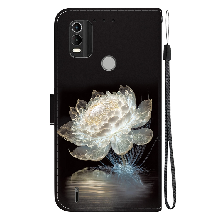 Funda para Nokia C21 Plus de Cuero con Dibujo Coloreado y Textura de Cristal (Peonía de Cristal)