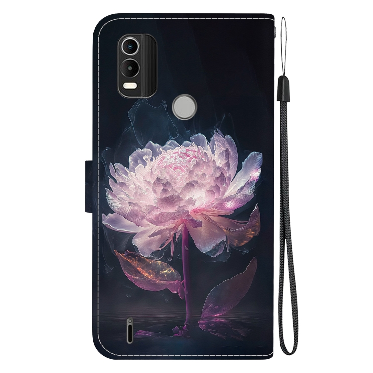 Funda de Cuero para Nokia C21 Plus con Dibujo Coloreado y Textura de Cristal (Peonía Púrpura)