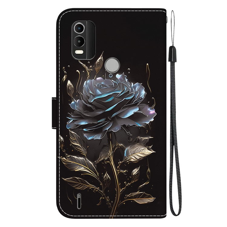 Funda para Nokia C21 Plus de Cuero con Dibujo Coloreado y Textura de Cristal (Rosa Negra)