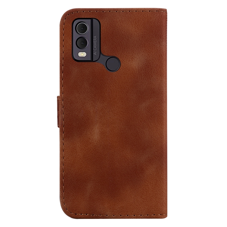 Funda de Cuero para Nokia C22 con Relieve en Forma de 7 (Marrón)