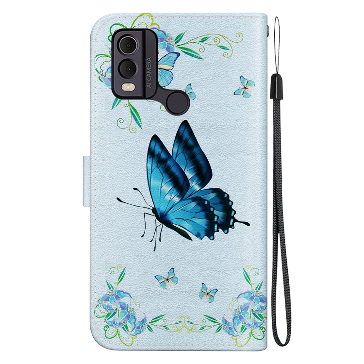 Funda para Teléfono Nokia C22 de Cuero con Dibujo Coloreado y Textura de Cristal (Pensamientos Azules)