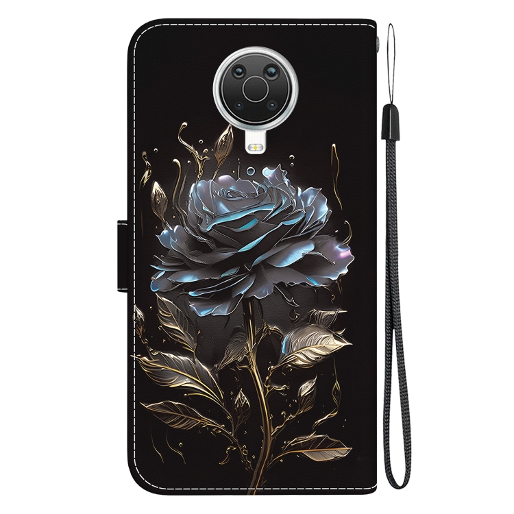 Funda para Nokia G10 y G20 de Cuero con Dibujo Coloreado y Textura de Cristal (Rosa Negra)