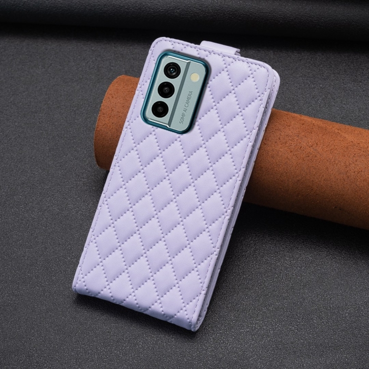 Funda de Cuero con Tapa Vertical para Nokia G22 Diamond Lattice (Púrpura)