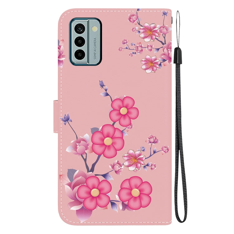 Estuche de Cuero para Nokia G22 con Dibujo Coloreado y Textura de Cristal (Flores de Cerezo)