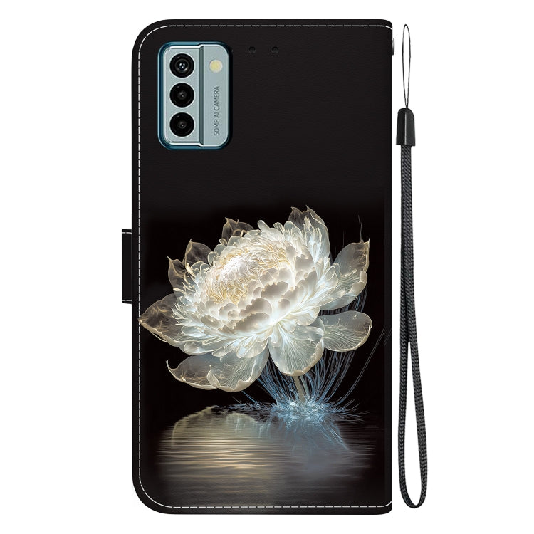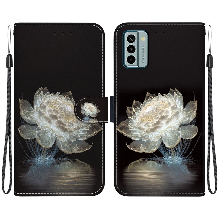 Estuche de Cuero para Nokia G22 con Dibujo Coloreado y Textura de Cristal (Peonía de Cristal)