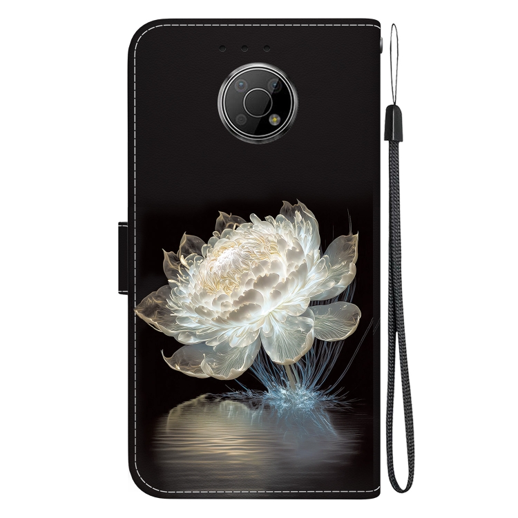 Funda de Cuero para Nokia G300 con Dibujo Coloreado y Textura de Cristal (Peonía de Cristal)