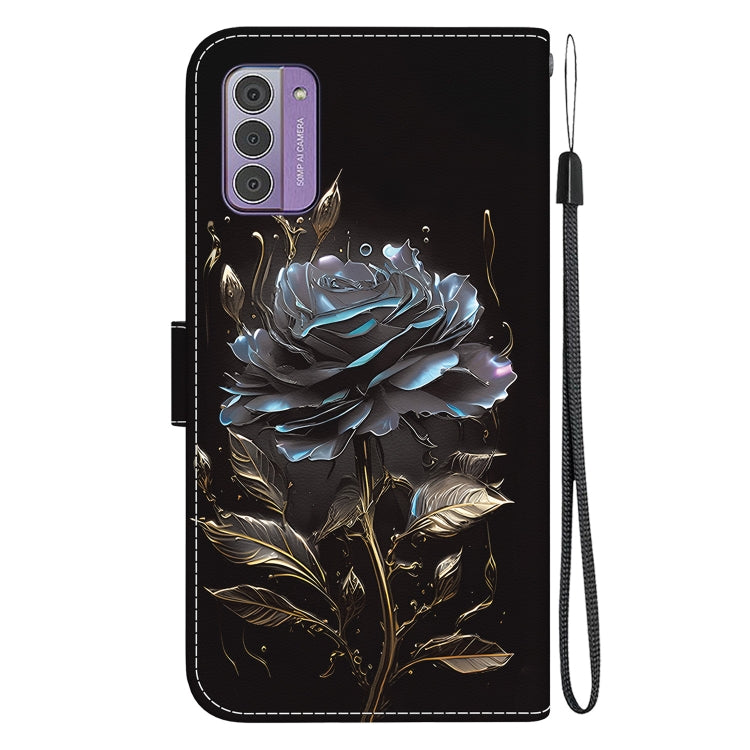 Estuche de Cuero para Nokia G42 con Dibujo Coloreado y Textura de Cristal (Rosa Negra)