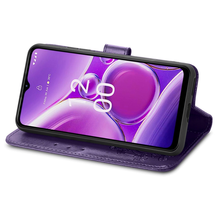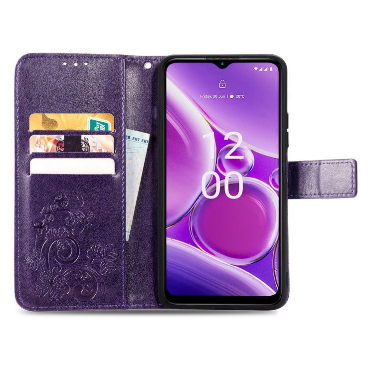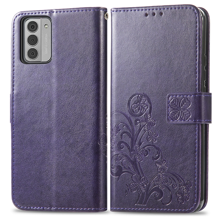 Funda para Nokia G42 de Cuero con Hebilla en Relieve y Cierre de Cuatro Hojas (Púrpura)