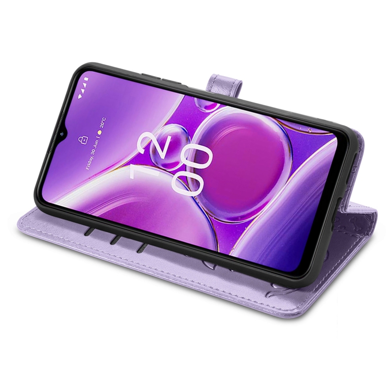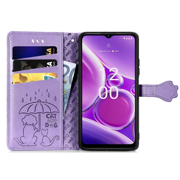Funda para Nokia G42 de Cuero con Relieve de Gato y Perro (Púrpura)