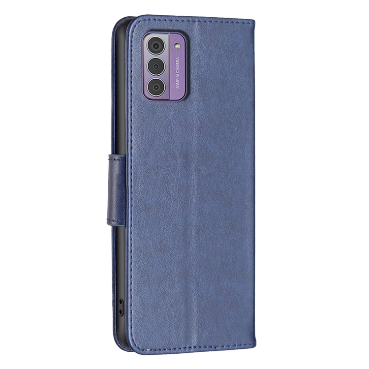 Funda de Cuero de Pu para Nokia G42/G310 con Tapa Horizontal Estampado Dos Mariposas (Azul Oscuro)