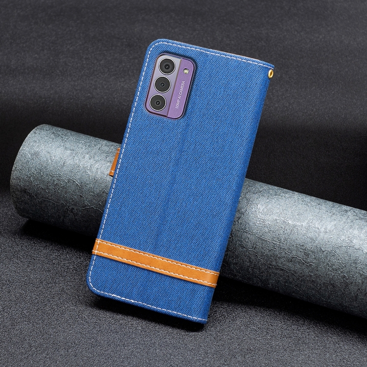 Funda de Cuero para Nokia G42/G310 con Tapa Horizontal y Textura de Mezclilla (Azul Real)